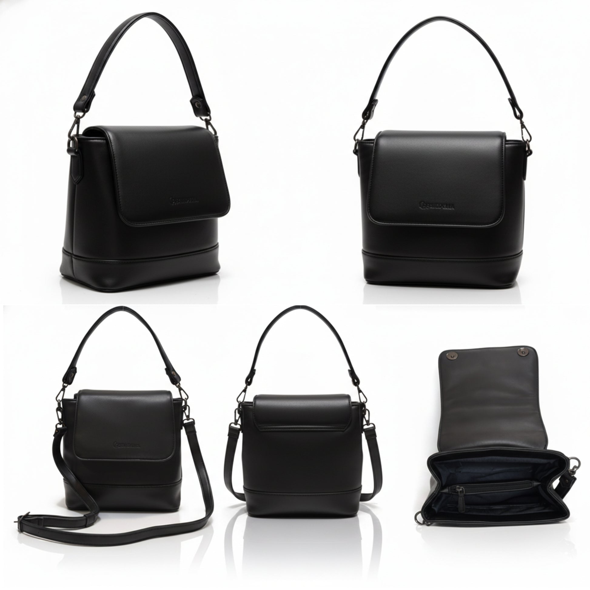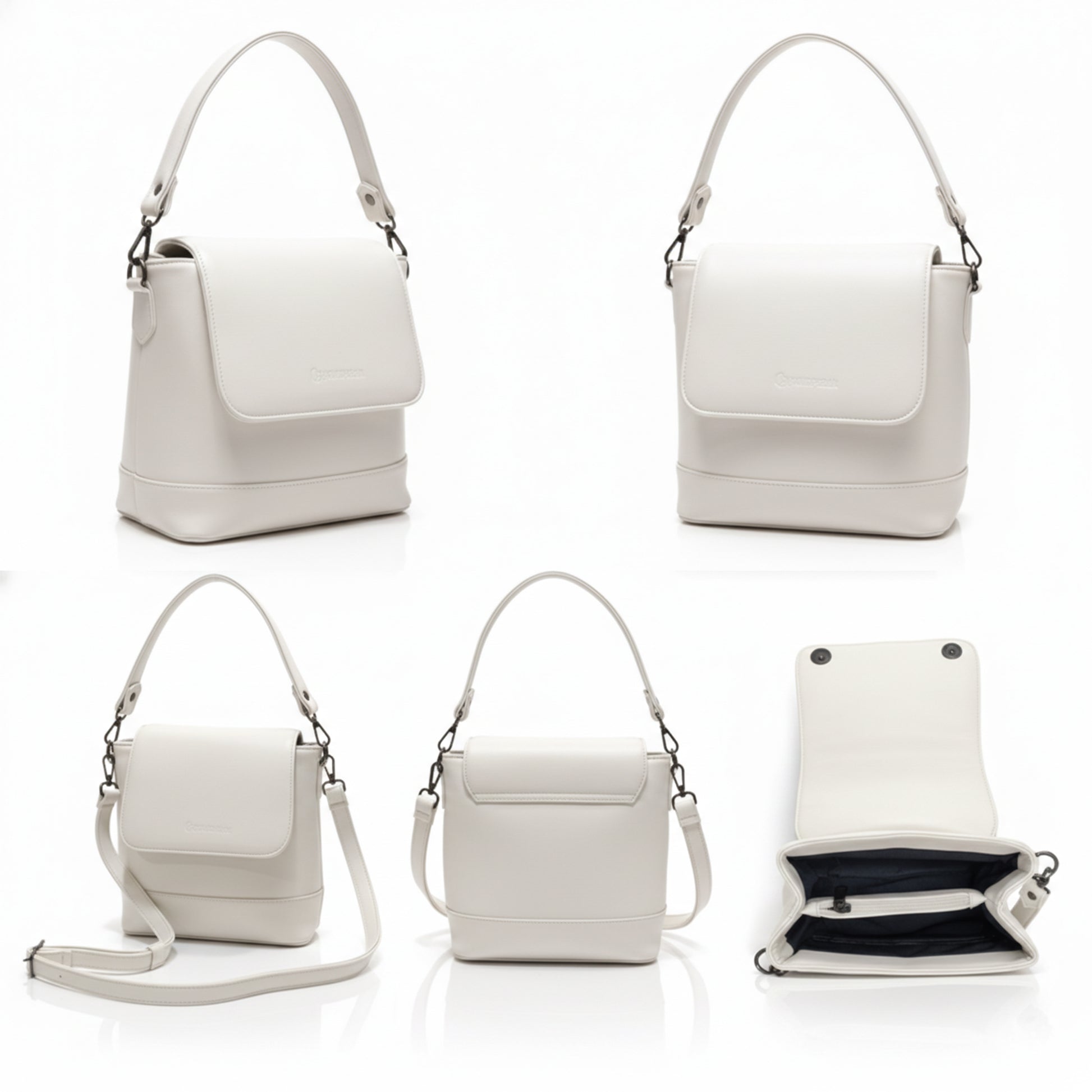 Crafted from a durable, high-quality leather material with a smooth refined finish. Features smart internal organization with two main compartments and an inner pocket for essentials. Designed with an elegant top handle for hand carry and a detachable crossbody strap for versatile daily use.