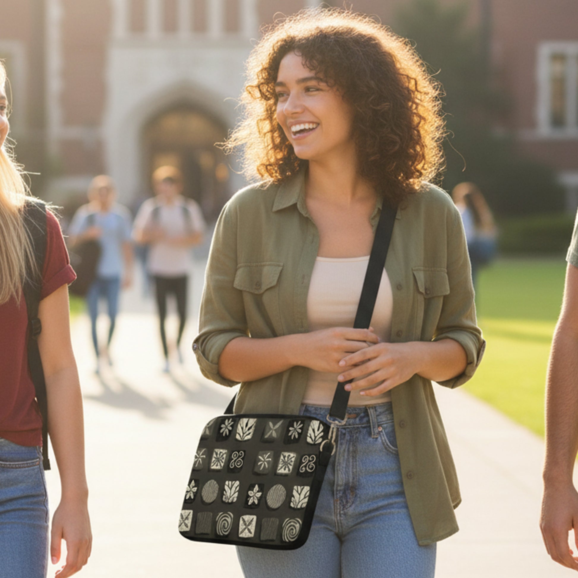 Equipped with a comfortable shoulder strap for easy carrying with a touch of elegance.
