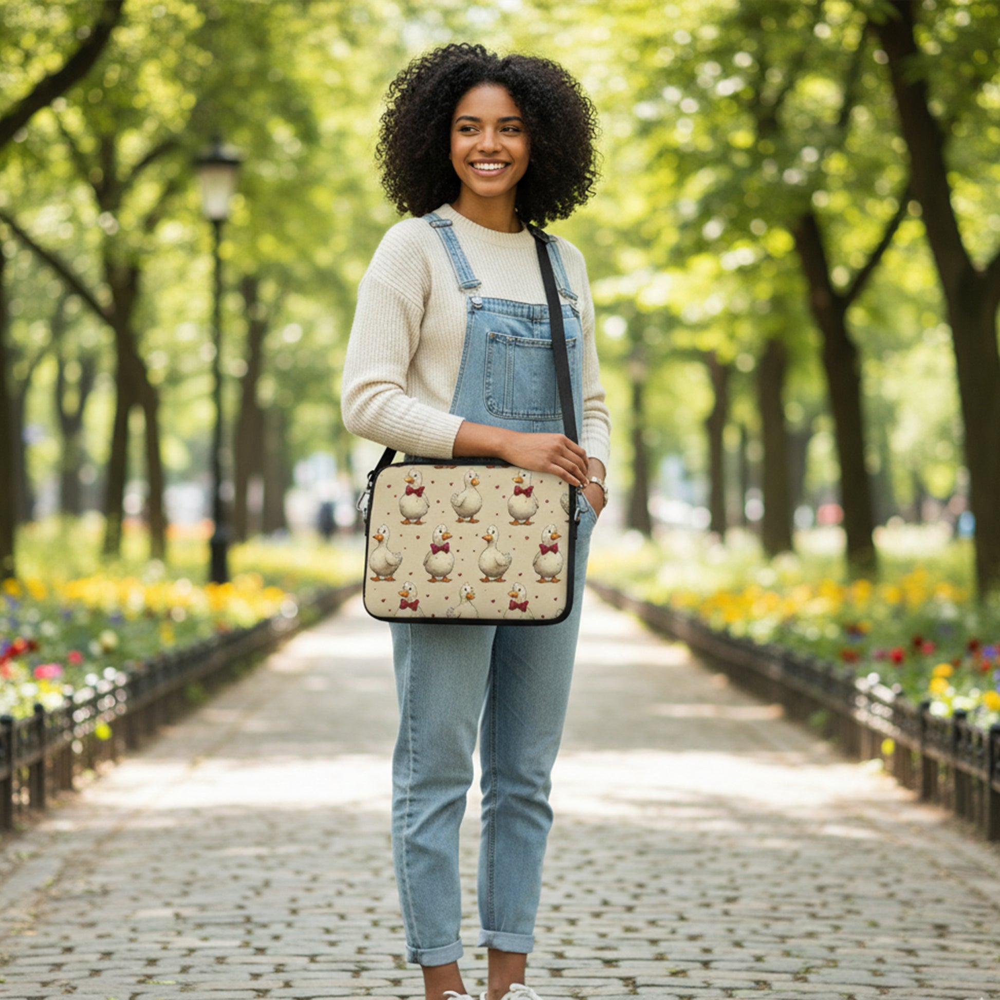 Equipped with a comfortable shoulder strap for easy carrying with a touch of elegance.