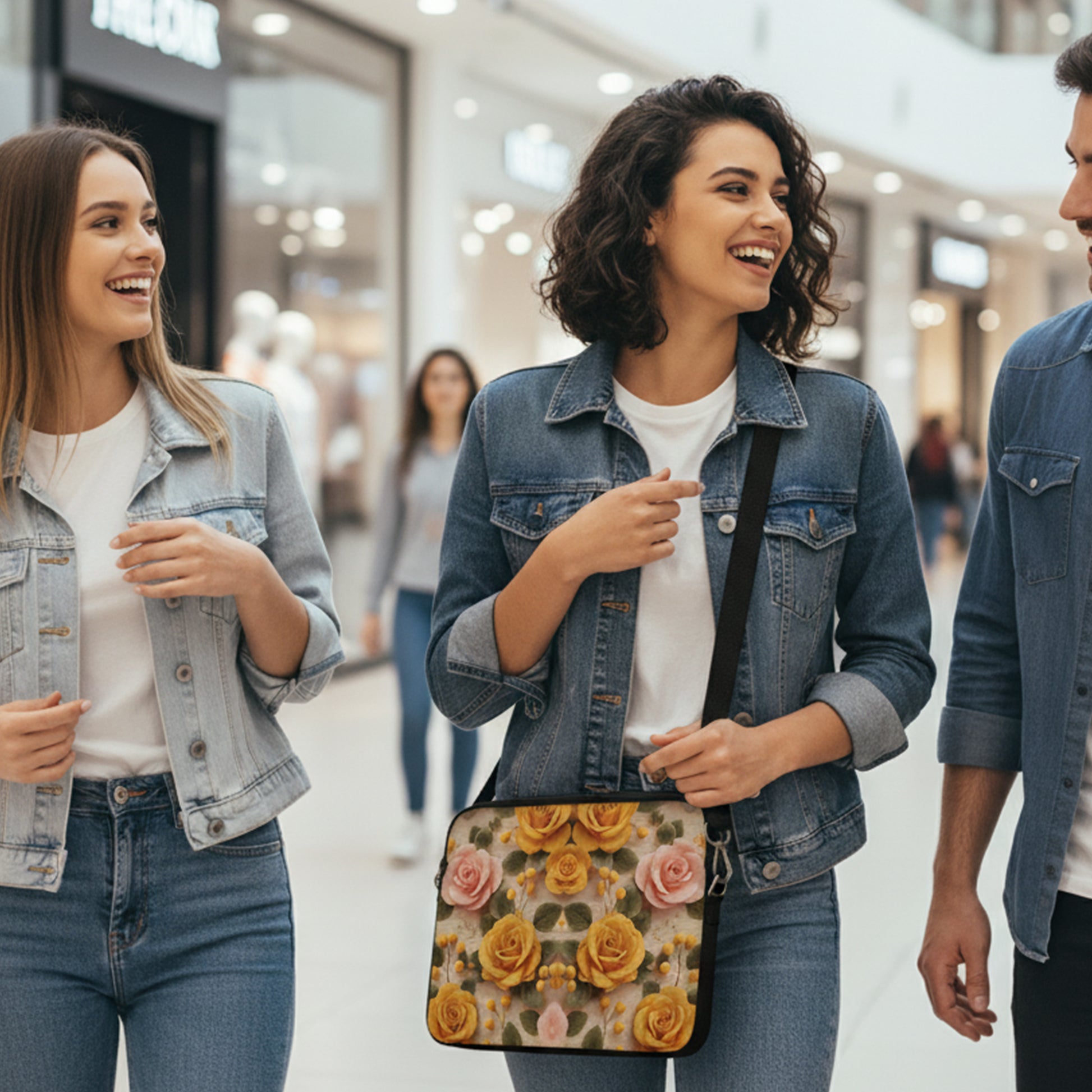 Equipped with a comfortable shoulder strap for easy carrying with a touch of elegance.
