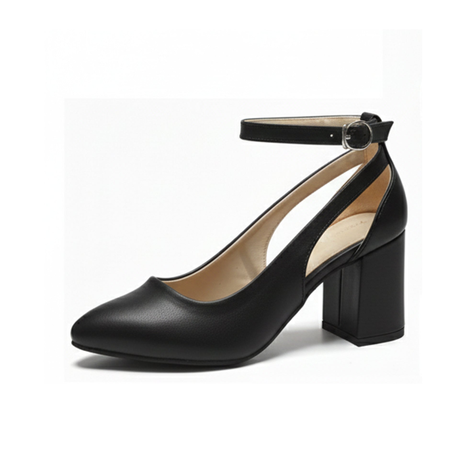 Crafted from a durable, high-quality leather material with a smooth refined finish. Features a stable block heel (~6 cm) that provides confident support while walking, finished with an adjustable ankle strap and metal buckle for a secure, comfortable fit. Completed with a cushioned, flexible sole to ensure lasting comfort throughout the day.