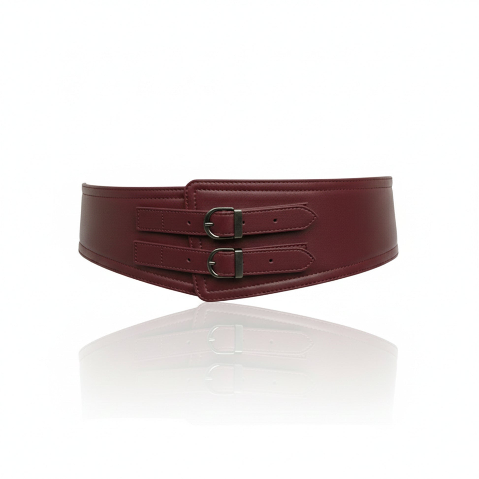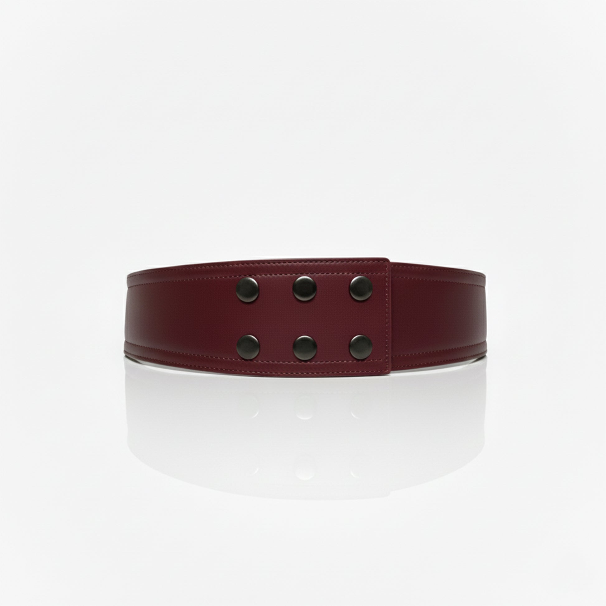 Crafted from premium durable vegan leather with a smooth finish. Features adjustable front metal buckles and a secure back snap closure, maintaining its shape while worn and offering a confident, comfortable fit.