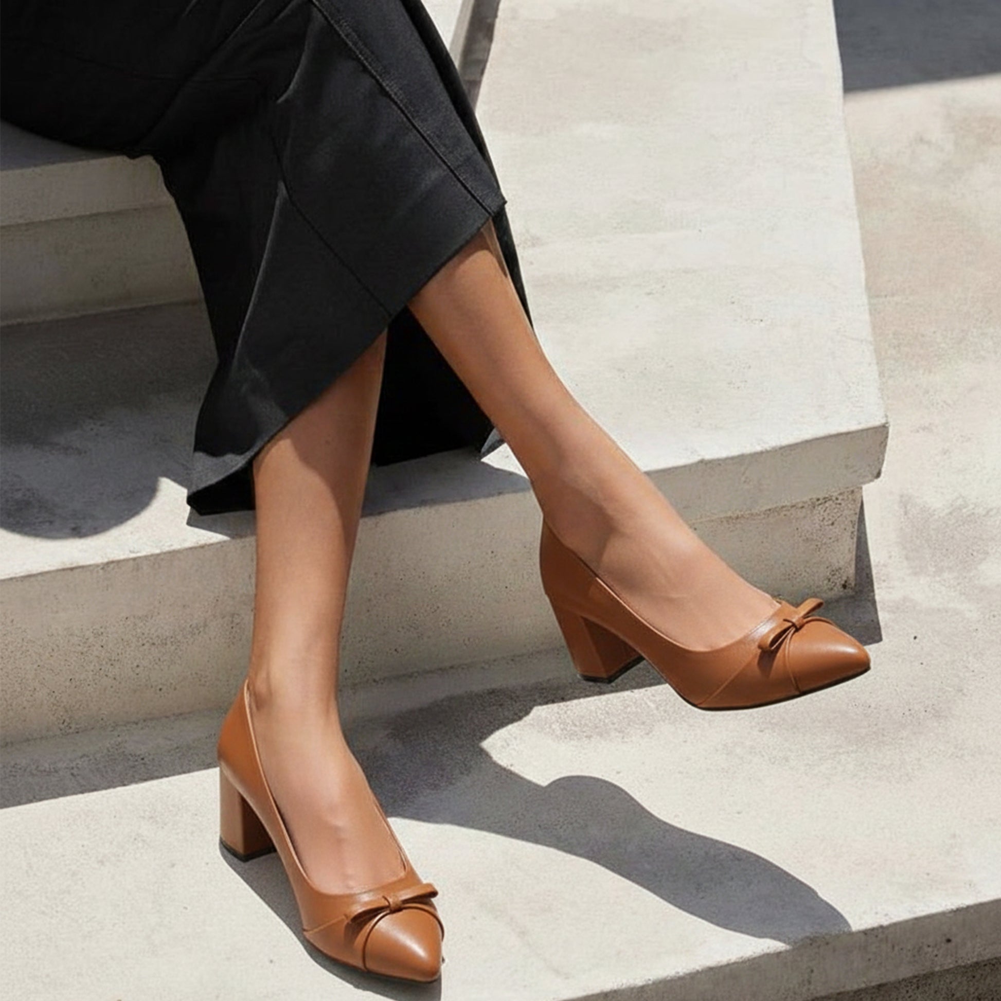 Crafted from a durable, high-quality leather material with a smooth refined finish. Features a stable block heel (~6 cm) that provides balance and confidence while walking, finished with a delicate front bow detail for a refined feminine touch, and completed with a cushioned, flexible sole for lasting comfort.